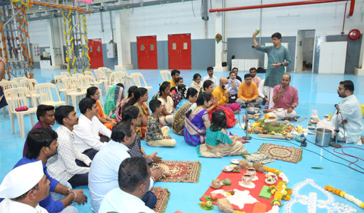 Unsere Niederlassung in Indien ist im Bundesstaat Maharashtra angesiedelt. Dort gehört es zur Tradition, vor jeder neuen Unternehmung zu den Göttern zu beten. Daher weihten die Mitarbeiterinnen und Mitarbeiter unserer indischen Niederlassung die neuen Räume mit einer traditionellen Feier ein. Etwa drei Stunden dauerte die Zeremonie, die von vier Priestern durchgeführt wurde. Sie soll Frieden und Harmonie in die neuen Räumlichkeiten und Erfolg für das Unternehmen bringen.