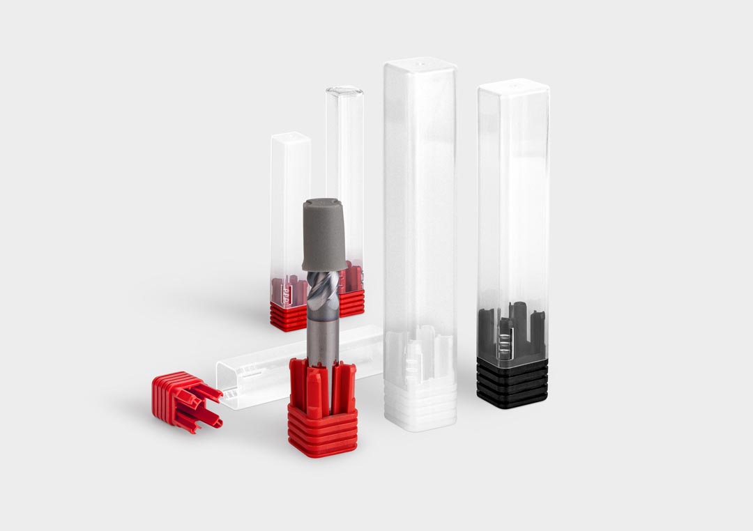 High-quality packaging tubes with short shankholding base-plug or telescopic inner part. Ideal for solid carbide cutters